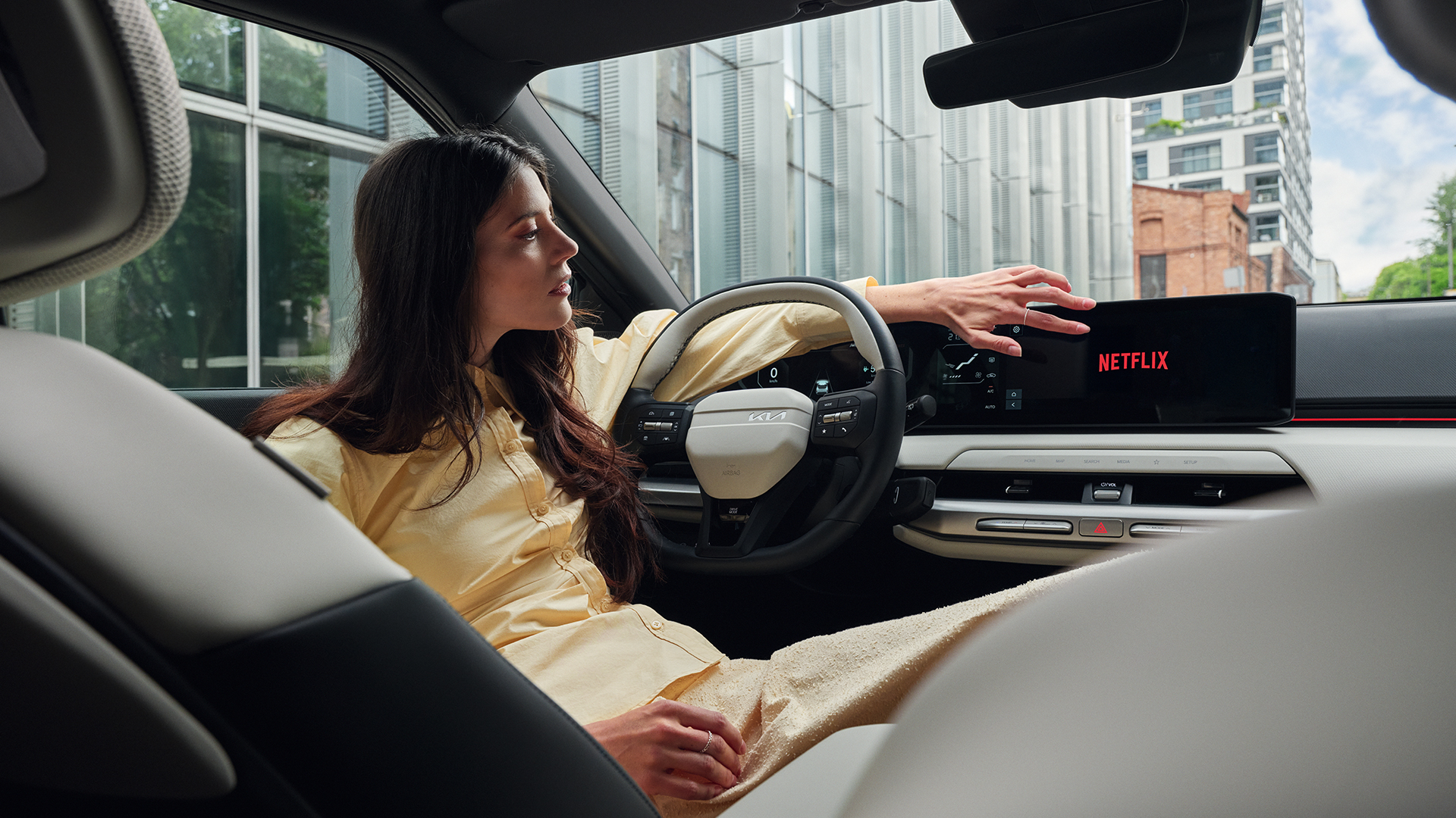 Der Kia EV4 bietet ein breites Spektrum an In-Car-Entertainment, darunter lassen sich Musik- und Videostreaming-Dienste, In-Car-Gaming-Angebote über LG webOS und einen WiFi-Hotspot ins Infotainmentsystem des Fahrzeugs kostenpflichtig über den Kia Connect Store integrieren, die sich zum Teil ausschließlich im geparkten Fahrzeug oder während der Ladepausen nutzen lassen. Dank des ultrabreiten Panoramadisplays und des optionalen Harman Kardon Soundsystems lassen sich Musik- und Videostreaming genießen, als hättest du dein eigenes Auto-Kino oder deine eigenen Konzert-Saal im Auto.